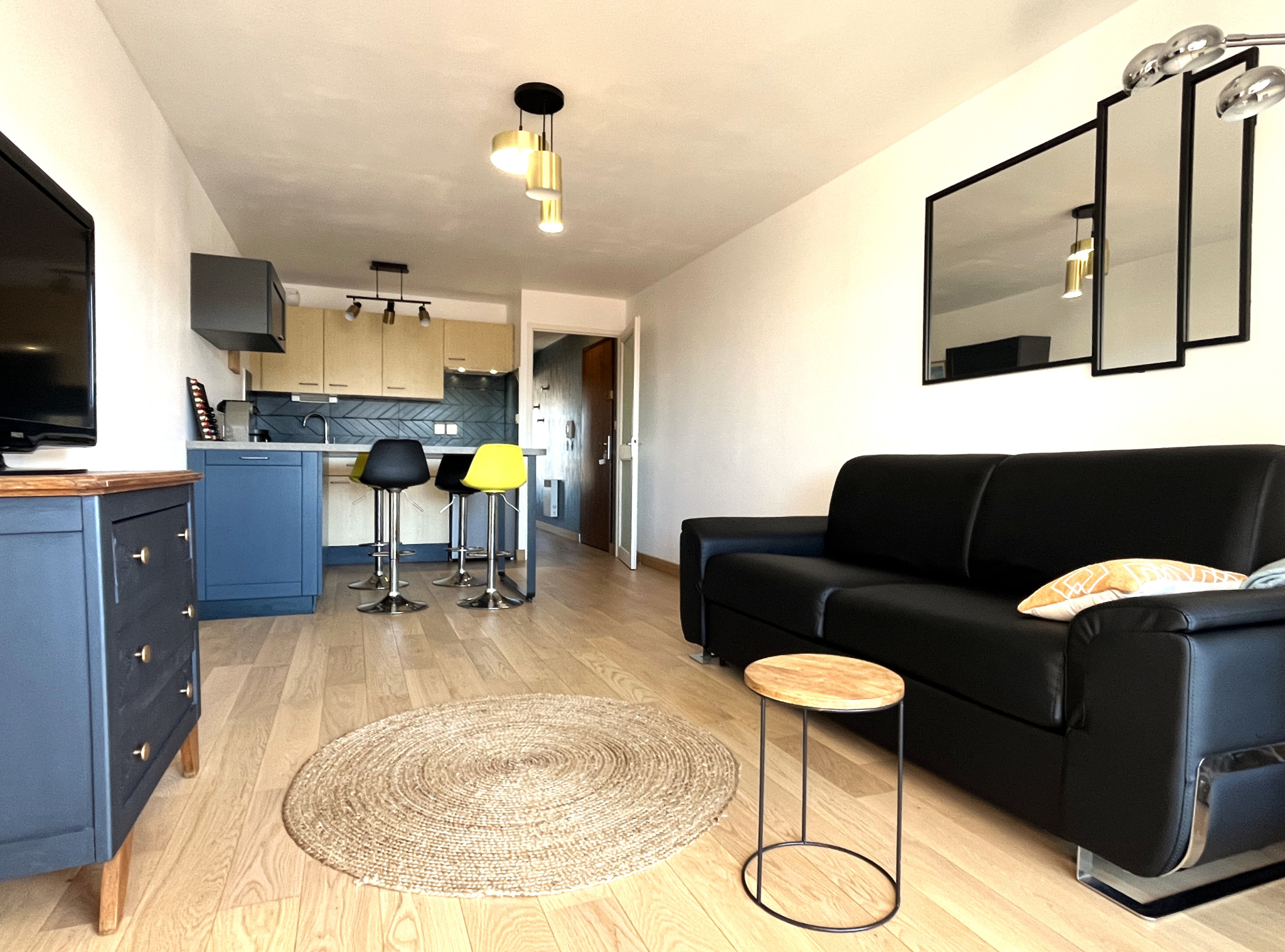 Appartement face mer offrant entrée avec espace couchage, salle de bains, wc, séjour avec cuisine...